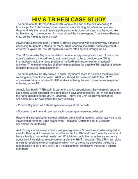 Download Hesi Case Study Hiv Tb Answers Kindle Editon